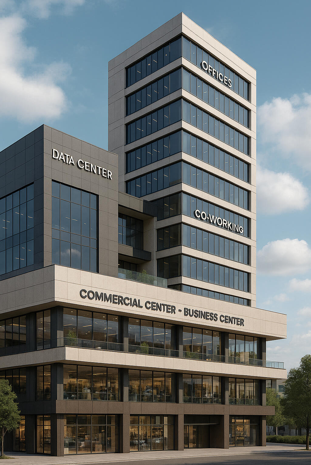 🔹 A collaborative business center, conceived as a space for innovation and productivity.